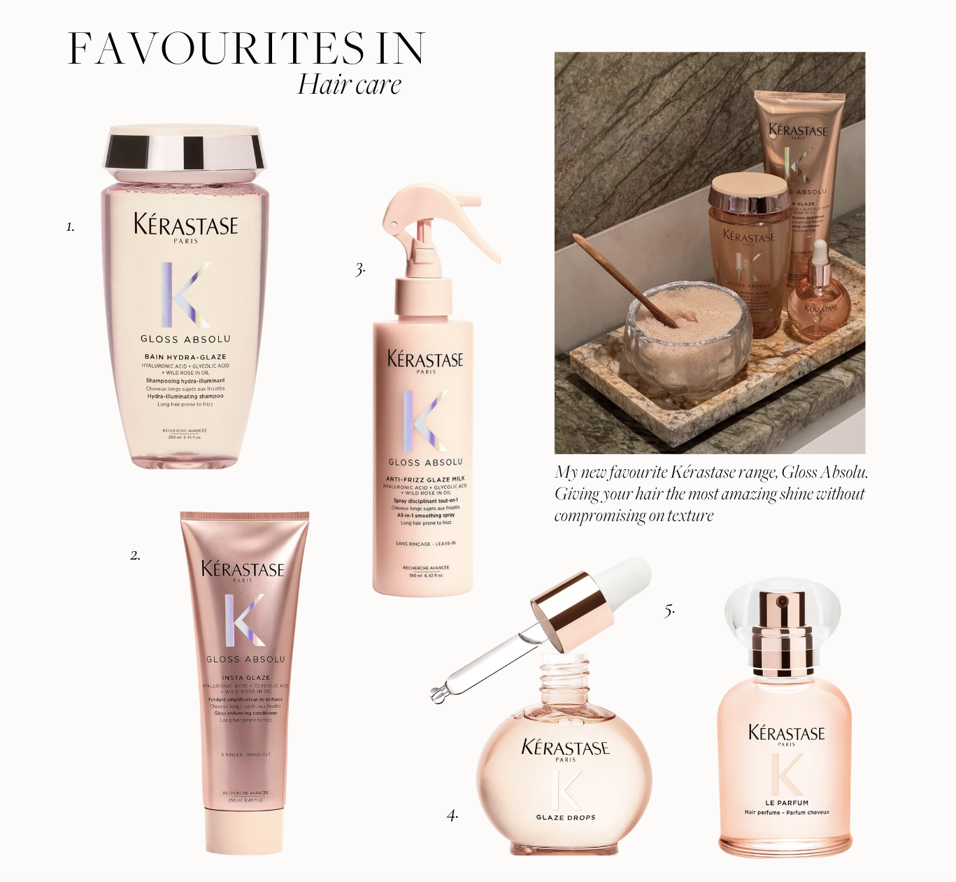 I’ve been loving the new Kérastase Gloss Absolu range, which really helps to maintain that healthy shine. Glossy, well-kept hair can make such a difference to how confident you feel.